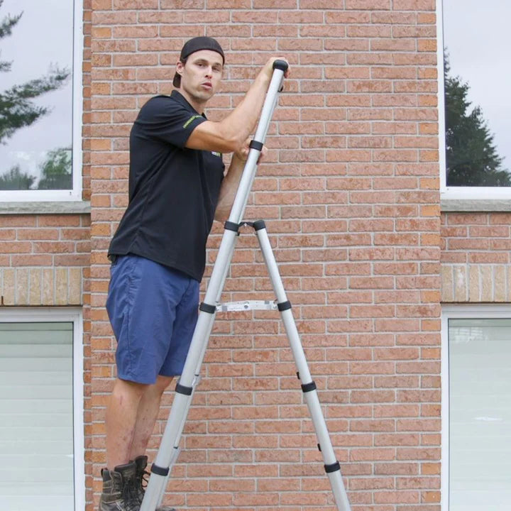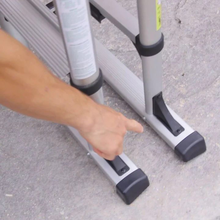 The ES Series features a wide stabilizer bar that provides additional stability and safety when using the ladder. The Essential Tool for Contractors, Professionals and Homeowners. Made of aircraft grade aluminum.